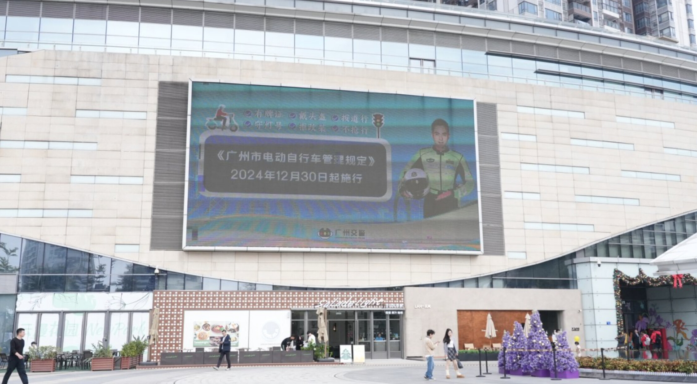 在东谈主流集会的商圈,新规宣传则以“大屏+小屏”的姿色伸开。记者在广州考虑之都时光汇的一家影院内看到,电影放映前,屏幕中播放着新规教导;在白云区云门NewPark、安华汇市场的大屏上,“有牌证、戴头盔、按谈行……”的新规宣传现实诊治播放。市场外,准备泊车的“电鸡”车主往往昂首不雅看屏幕中的现实。